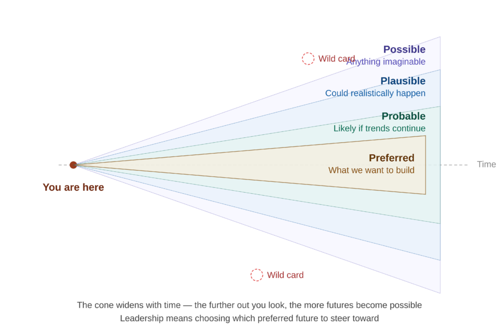Futures studies gives us the language to make these choices consciously, rather than drifting into them by default.